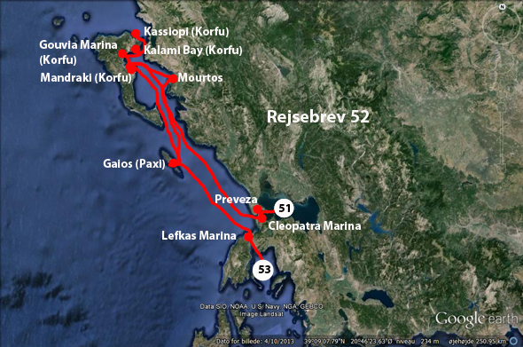 Vi nåede at lære Préveza lidt bedre at kende – det er en dejlig by med flinke indbyggere. Ret hurtigt efter søsætningen satte vi dog kurs mod det smukke Korfu, og det blev til et meget positivt gensyn. Vores første sejltur blev i varmt solskinsvejr og spejlblankt vand, og vi valgte at gå ind til Mandrakis marina lige ved det gamle fort i Korfu – et hyggeligt, intimt sted, hvorfra det var nemt at gå op i byen. Vi valgte dog at modtage første hold gæster i Gouvia marina, hvor faciliteterne er lidt bedre. Kasper, Julie, Maiken og Jakob kom som planlagt lørdag den 5. maj om formiddagen, og vi havde en herlig uge sammen, hvor vejret var rigtig godt. Vi fik besøgt Korfu by, Paxi og Mourtos, der blev badet, sejlet i gummibåd, spist is, drukket kolde øl og hygget. Kasper fik snart lært, hvordan chokoladeis ser ud – og smager!